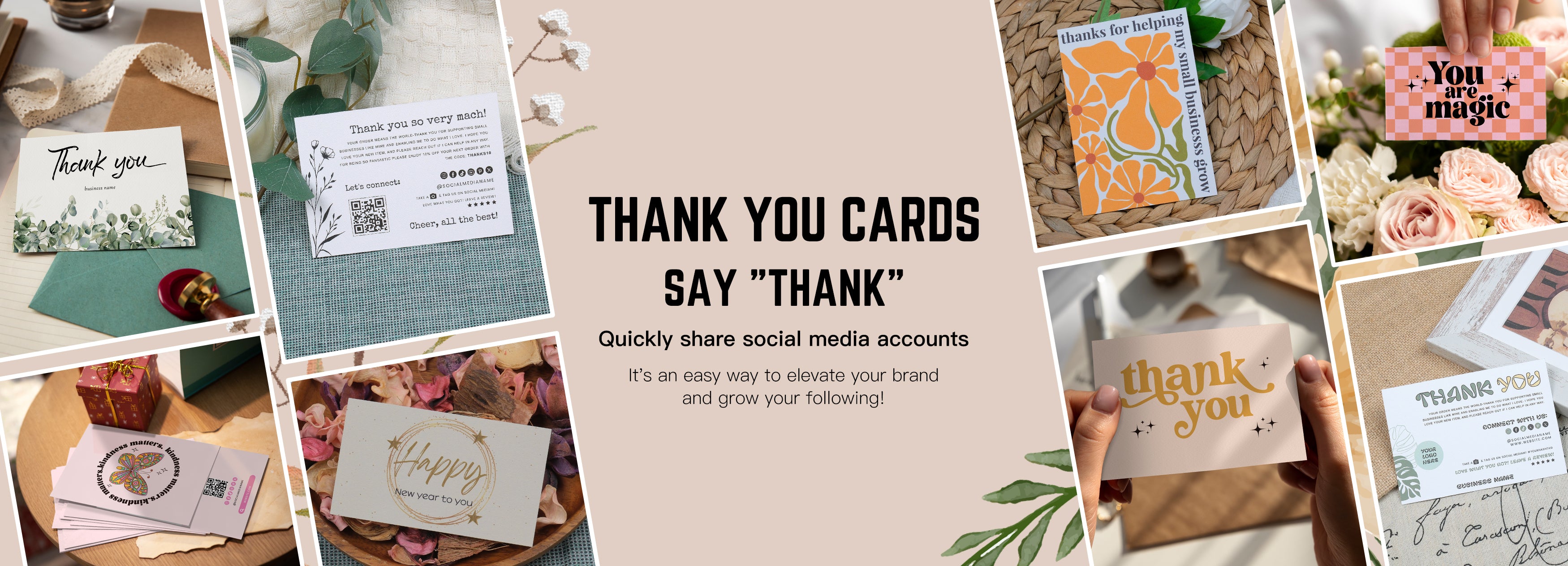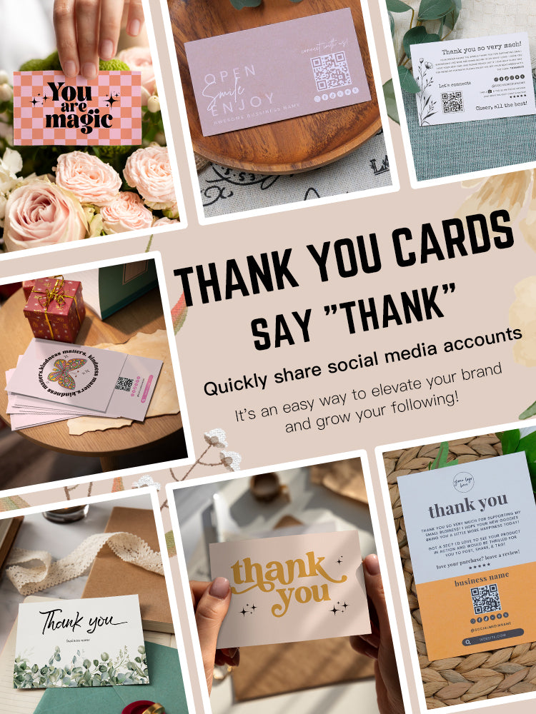 Sharing your social media shouldn't be hard. Our QR code thank you cards make scanning, connecting, and going easy! Customize each card with your logo and message to keep your brand fresh in their minds.