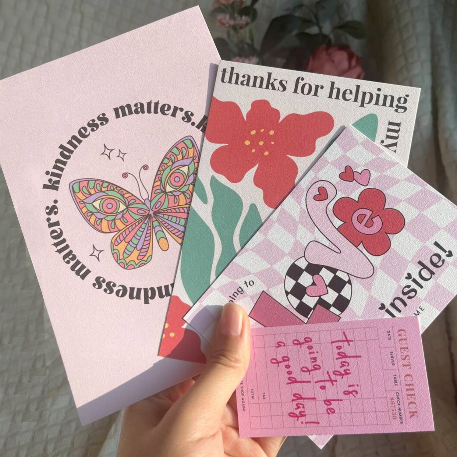 Choose from various sizes (3.5x2 in, 5x3.5 in, 6x4 in, 5x7 in) to suit any occasion and perfectly match your brand’s vibe!